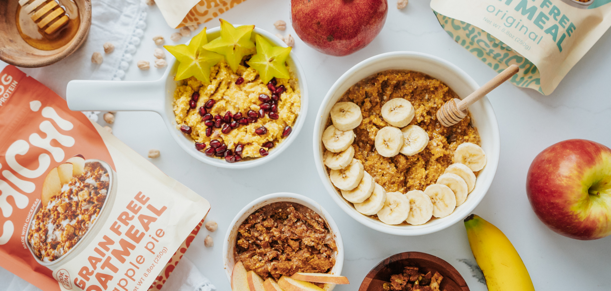 We’re Izzy and Chiara, co-founders of ChiChi. A few years ago, we started mashing chickpeas in our college dorm, and eating them as a healthy alternative to oats. They were energizing, natural, and delicious, and ChiChi was born!